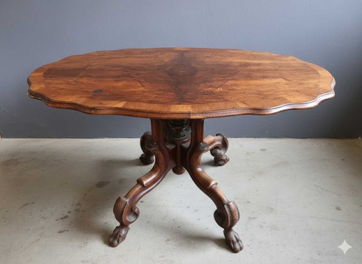Predám drevený starožitný stôl s nádherným tvarovaným okrajom a bohato zdobenou podnožou. Ide o poctivý drevený kus, ktorý dodá interiéru eleganciu, teplo a autentický vintage nádych. Stôl je stabilný, zachovalý a vhodný ako dekoratívny aj funkčný doplnok do obývačky, pracovne či chalupy.