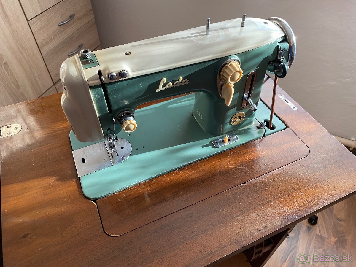 Predám plne funkčný mechanický (šľapací) šijací stroj Lada 236 (viď foto), k šijaciemu stroju je aj príslušenstvo (cievky, pätky, ihly, nitky...)Na stroji bol v minulosti vymenený koženný hnací remeň. Stroj ako celok je vhodný na okamžité používanie. Skriňa buď na renováciu keďže už má známky používania alebo v prípade vážneho záujmu je možný odber len šijacieho stroja + kovové súčasti bez drevennej skrine.