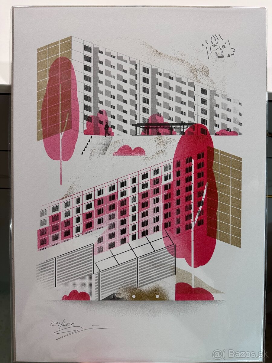 Predám grafiku Čierne diery Starý Ružinov - Jozef Gľaba. Výtlačok 129/200.
