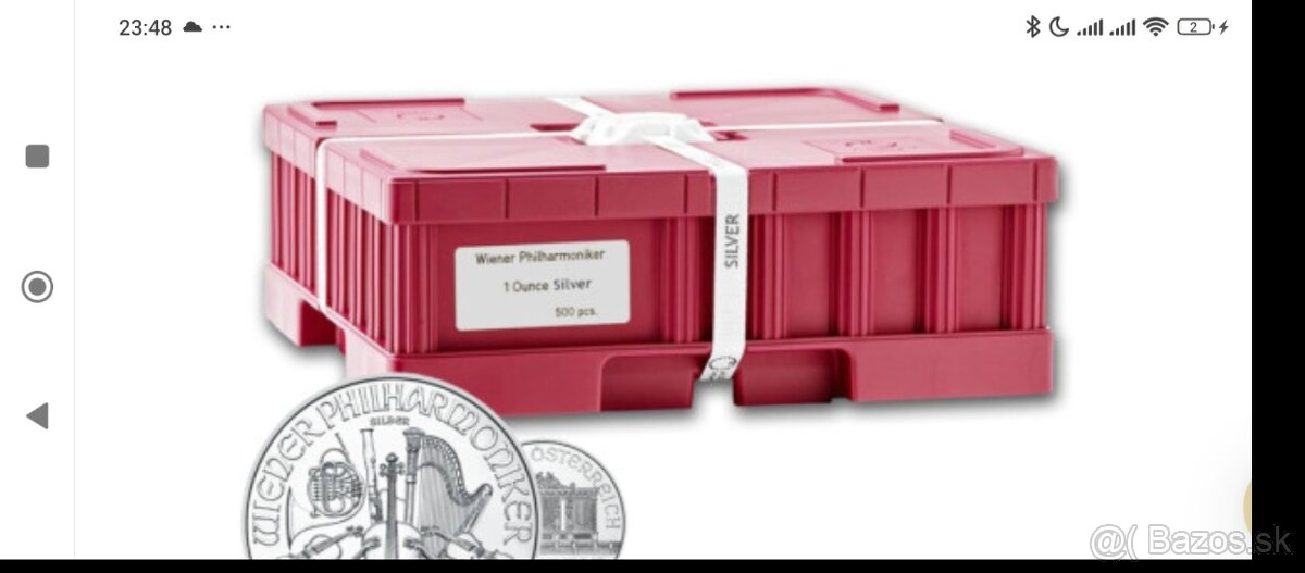 Investicne striebro 1oz mince Wiener Philharmoniker - TOP - [7.2. 2026]Dobrý deň, ponúkam na predaj komplet box 500ks 1oz Wiener Philharmoniker aj s originál faktúrou.
