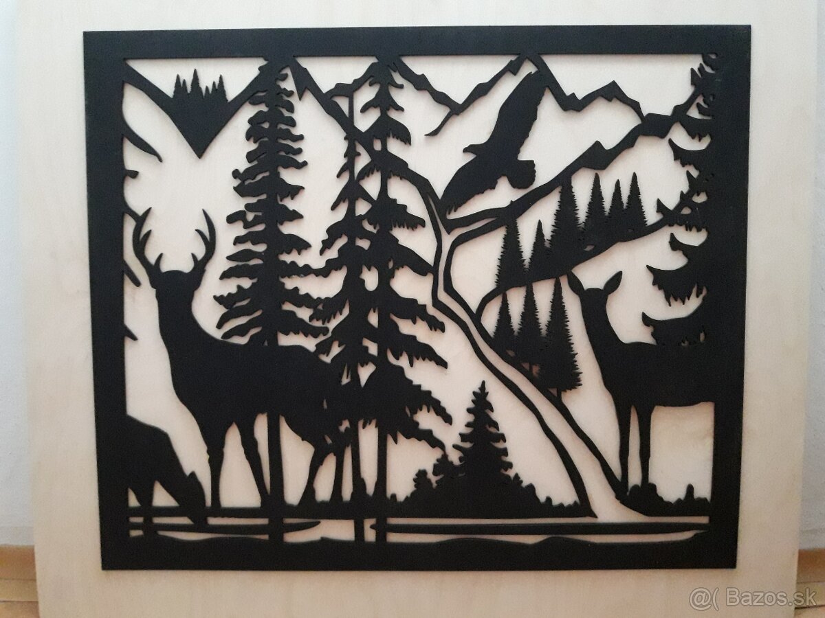 predám obraz vyrobený laserovou vypalovačkou s motývom prírody,poľovnícky motýv rozmery podkladovej preglajky 605x505mm rozmery samotného motývu v čiernom prevedení 500x416mm cena30€+poštovné