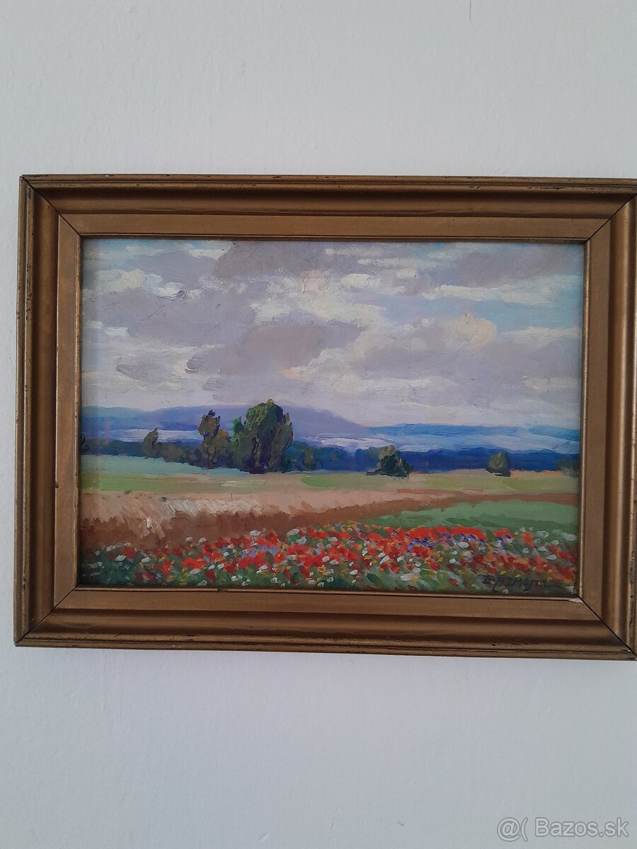 Fridrichová - [7.2. 2026]Predám obraz, olej na kartóne, r.1995. Fridrichová Silvia "Kvitnúce trávy". Rozmery 13 x 11 cm, s rámom 25 x 22 cm.