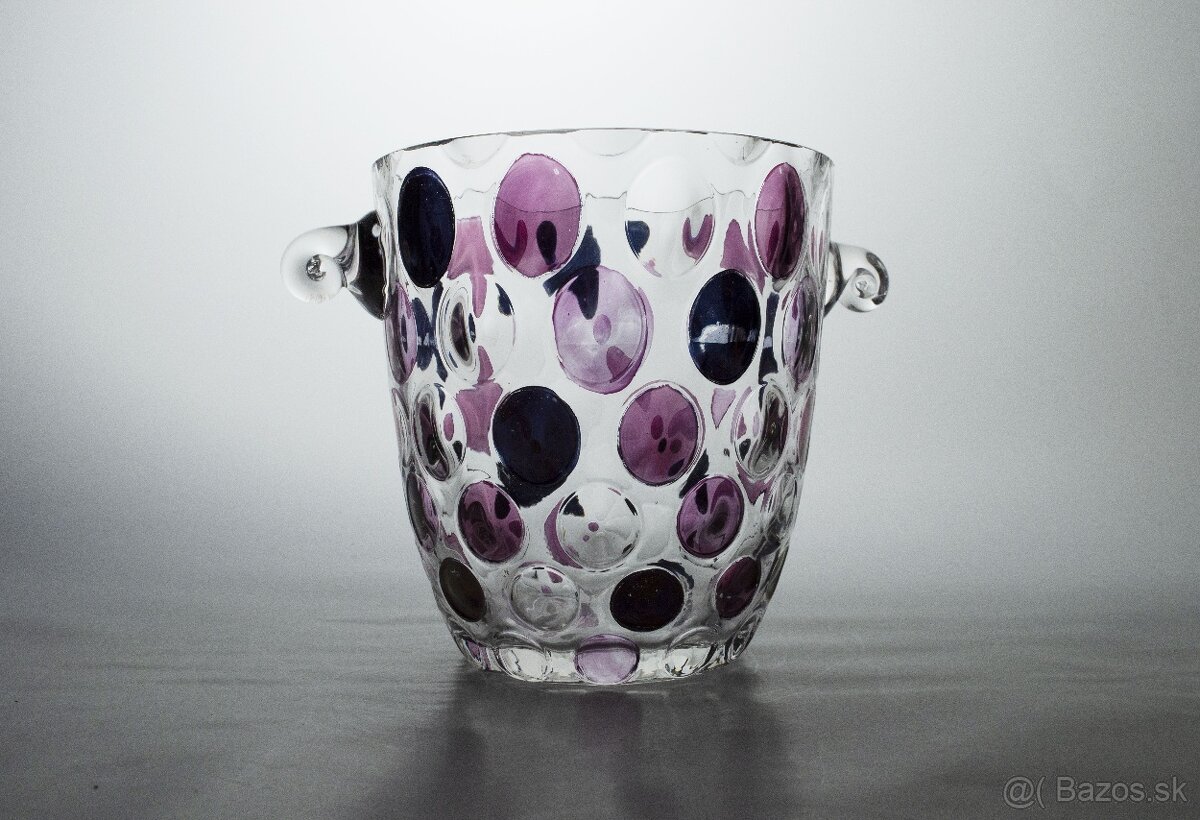 Ponúkam sklenenú nádobu na ľad. Autor návrhu Max Kannegiesser, výroba Crystalex. Výška 13 cm, priemer 12,3cm s úchytkami 17 cm. bez poškodenia. Kontaktovať iba emailom.