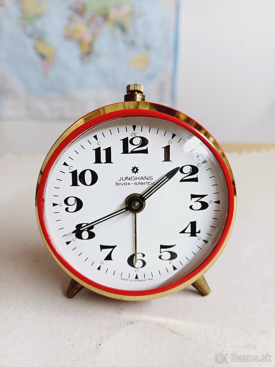 Predame pekne nemecke Hodiny JUNGHANS Bivox-Silentic Made in Germany. Pekný retro vintage budík-hodiny, celkom pekny stav. Alarm je funkčný, hodiny fungujú, ale aj zastavujú, keď je položený na zadnu stranu tak beží a funguje bez problémov, ale keď je postavený normálne tak funguje a potom sa zastaví. Takže predávam ako nefunkčné alebo na opravu alebo ako pekná dekorácia. Priemer hodin: 6 cm. Kliknutim na moje meno pozrite moje ďalšie inzercie, ďakujem.