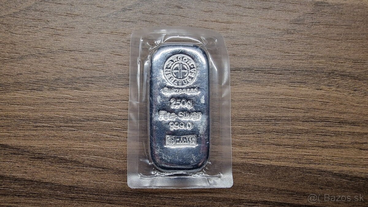 Investicne striebro 250g - [1.2. 2026]Predam investicne striebro. Hmotnost 250 g. Argor heraeus. Strieborna tehlicka. Strieborny zliatok.