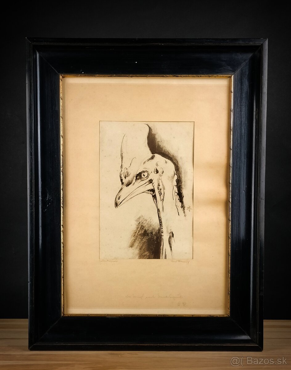 1, Neidentifikovaný autor - Kazuár veľkoprilbý - kresba tušom