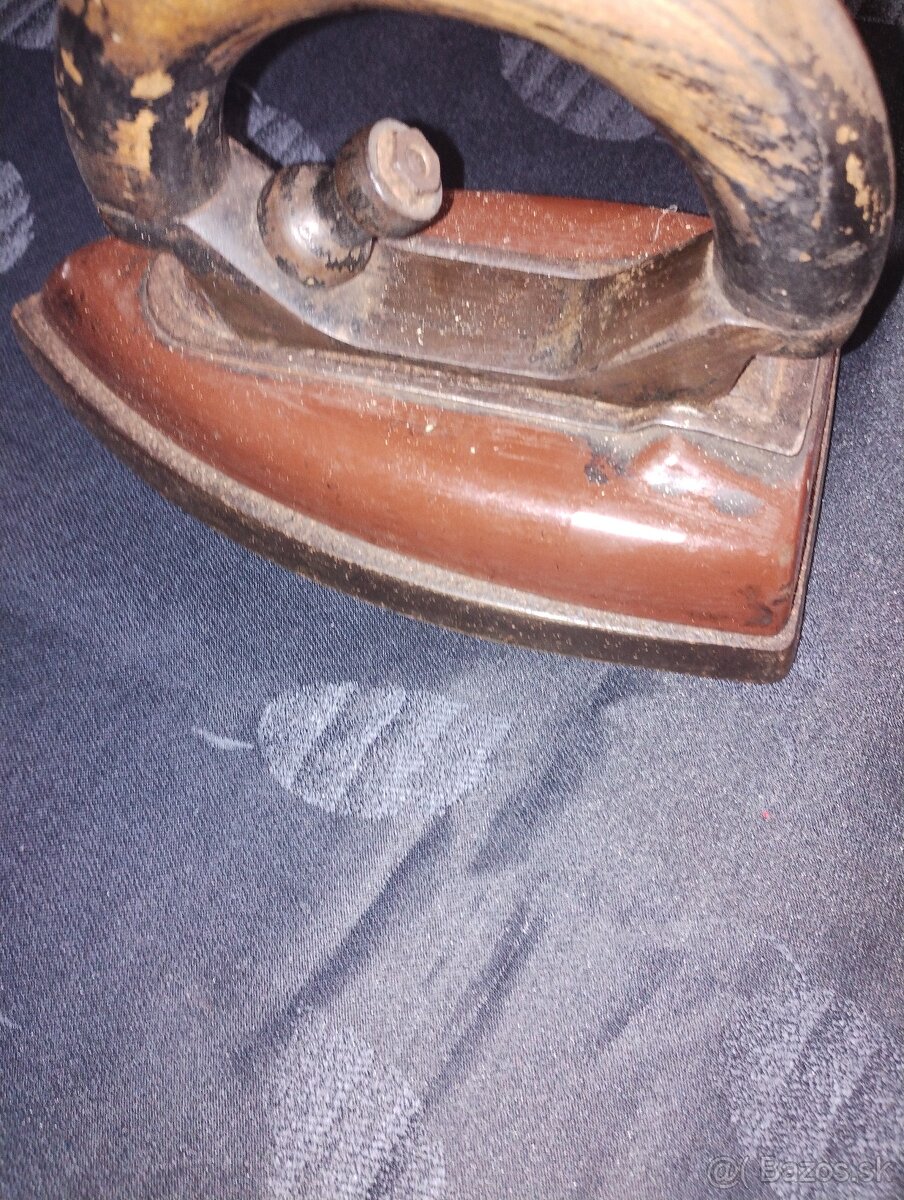 Starožitná žehlička na nahrievanie, zaujímavosťou je, že na žehličke sa vymieňala len rúčka, kým sa jedna nahrievala, druhou sa pracovalo. Vhodná na dekoráciu, resp. pre zberateľa. Cena 25 eur, príp. dohoda