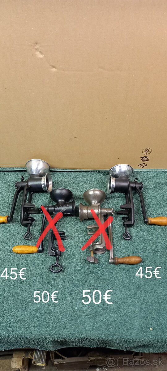 Žehličky,mlynčeky liatinové - [30.1. 2026]Predám starožitné žehličky a liatinové mlynčeky na kávu. Cena 100€,150€,90€,80€,40€,50€.