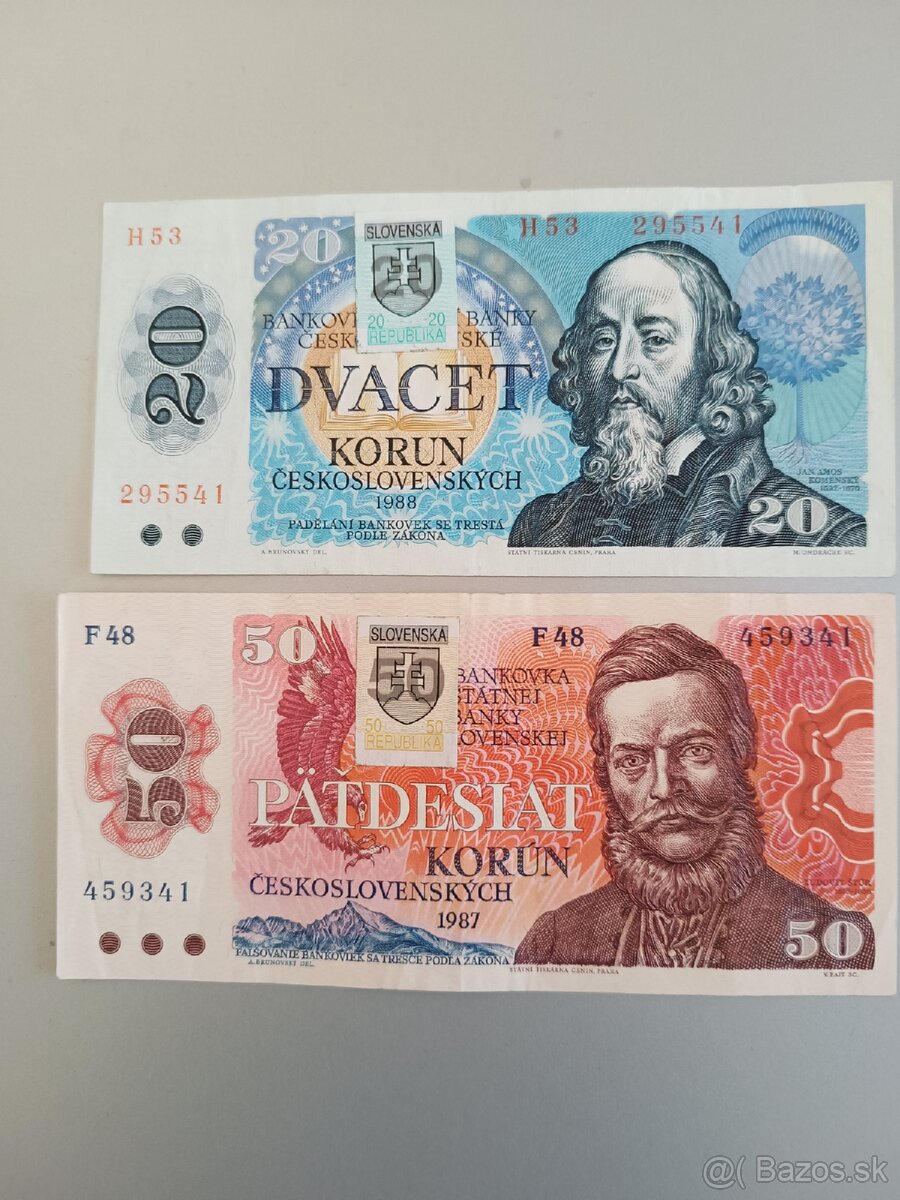 Predám Slovenské kolkovane bankovky cena spolu 55€+pošta.stav viď foto.