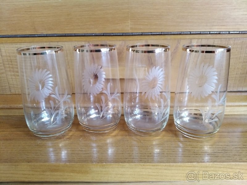 predám poháre brúsne motív kvetina zo zlatými okrajmi, výška 13cm, objem cca3dl, vo veľmi dobrom stave...
