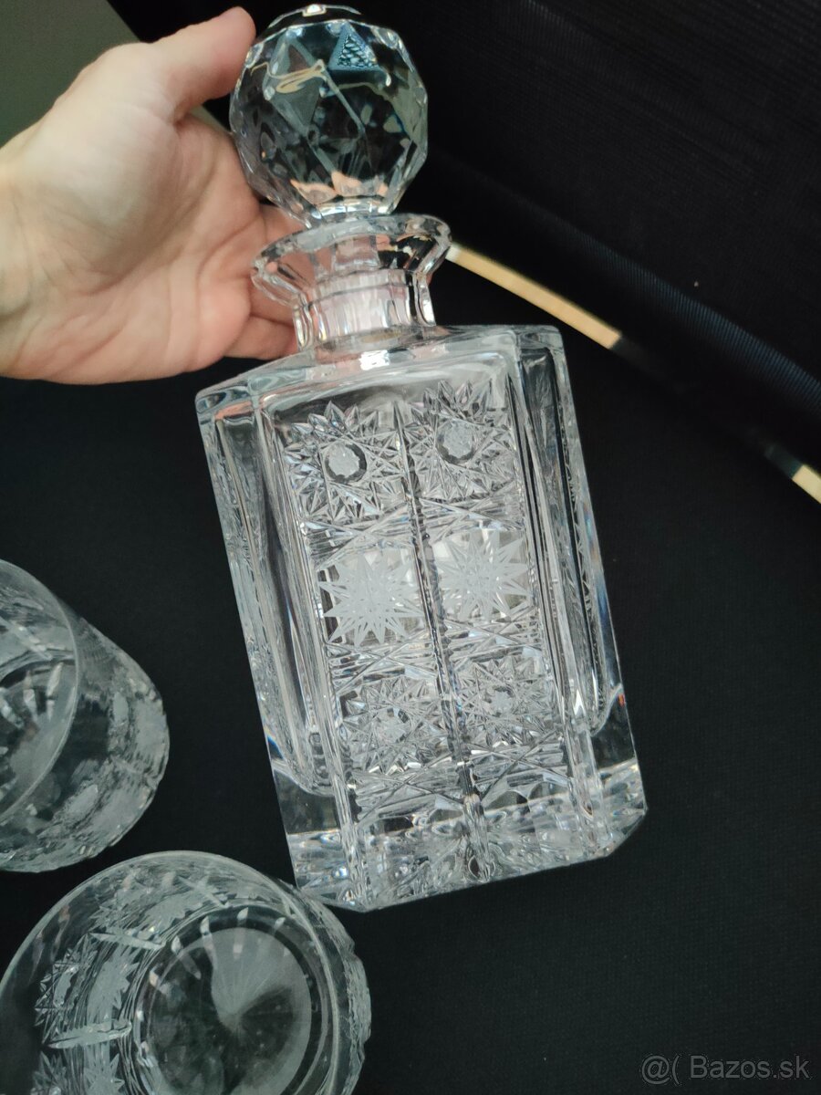 Ručne robená krištáľová sada na whiskey (fľaša a 2 poháre), slovenská značka Sonne Crystal.