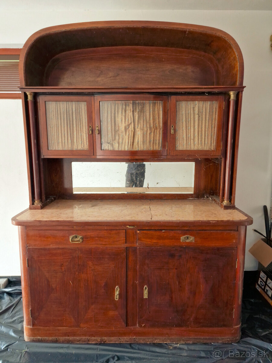 Predám hodnotný starožitný sekretár vyrobený z masívu, v kombinácii so sklom a mramorom. Vek cca 100 rokov.
