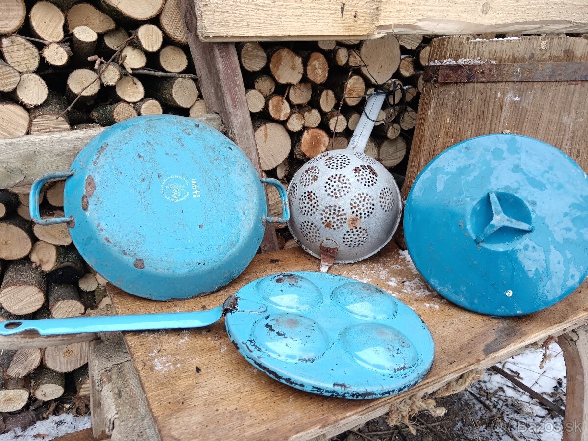 Ponúkam na dekoráciu staré smaltované nádoby. Modrý smalt. Odošlem aj poštou, cena dohodou - symbolická.