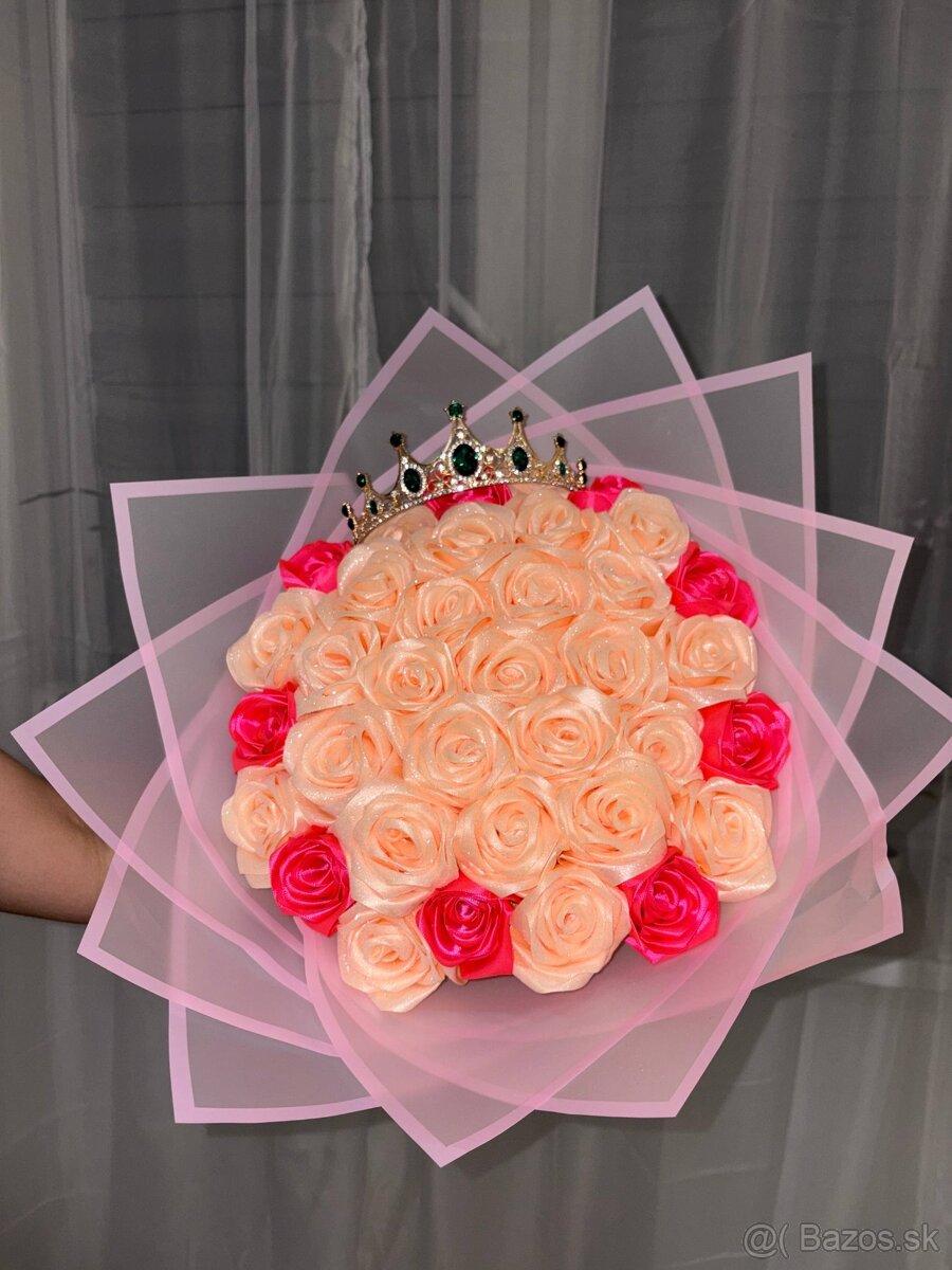 Ručne vyrobená zo saténovej stuhy – krásny darček, ktorý nezvädne a bude robiť radosť dlhé roky.