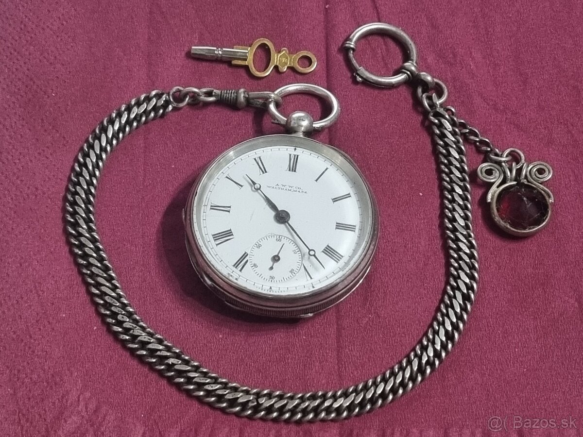 Strieborné, vreckové hodinky,Waltham.