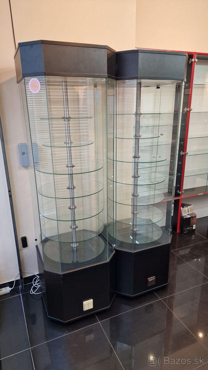 Predám 2ks elektrické otočné presklené stojany s osvetlením, určené na hodinky, šperky a iný tovar, v rozloženom stave na prevoz, rozmery po zložení 60x60x200cm, odvoz treba zariadiť na mieste, cena 130€/ks, likvidácia predajne.