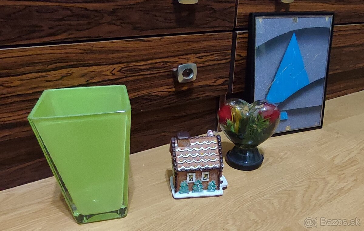 Predám tieto dekorácie sú ako nové, váza bola dva tri krát použitá: domček ( už mi nesvieti, možno len baterka doslúžila),ťažítko srdce, váza, obraz ( reprodukcia).