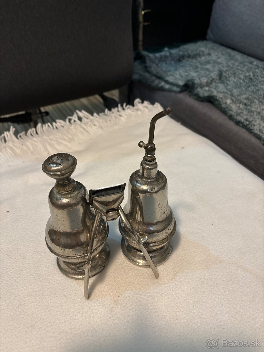 Predám starožitný holičský strojček na strihanie, kropeničku a nádobku na vodu po holení.