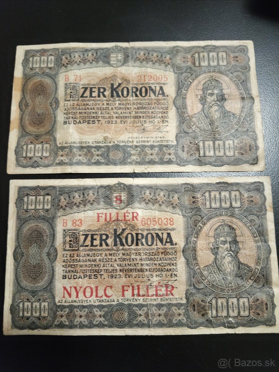 Bankovky Maďarsko 1000 Korona 1920 a 10 Mil B Pengo UNC - [19.12. 2025]Predám krásne staré maďarské bankovky v krásnych stavoch bez úprav: