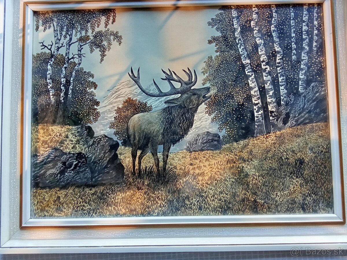 Originál obraz Jelena od Šoustala , zarámovaný, zasklení ,rozmer 73 x 55 cm. cena 49.-