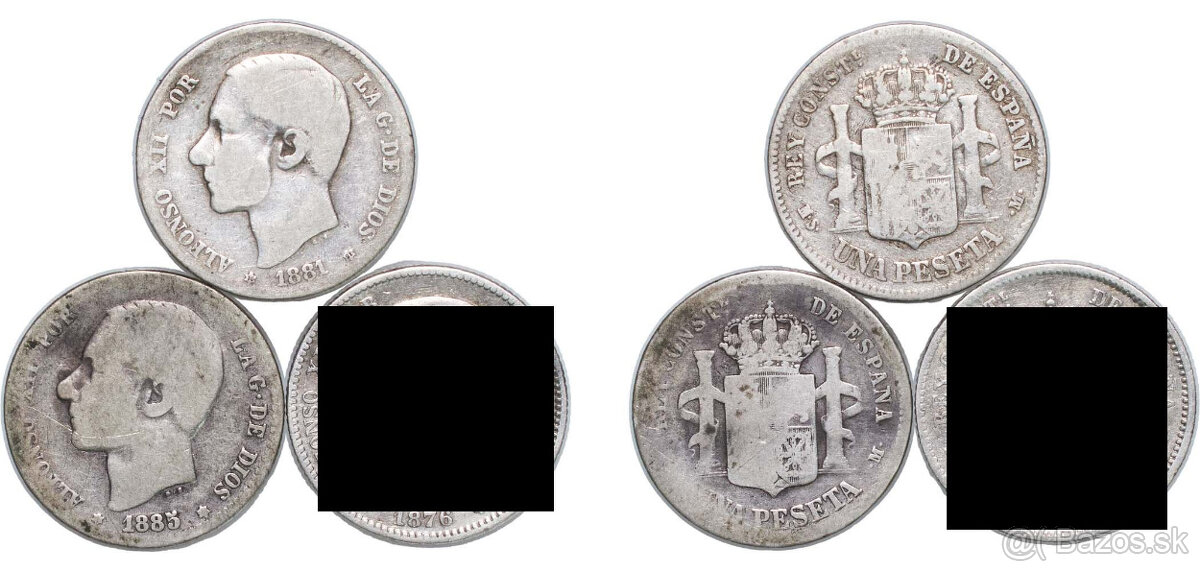 Obr. 1 - 1 Peseta, Španielsko 1881, 1885 (11 € za kus)