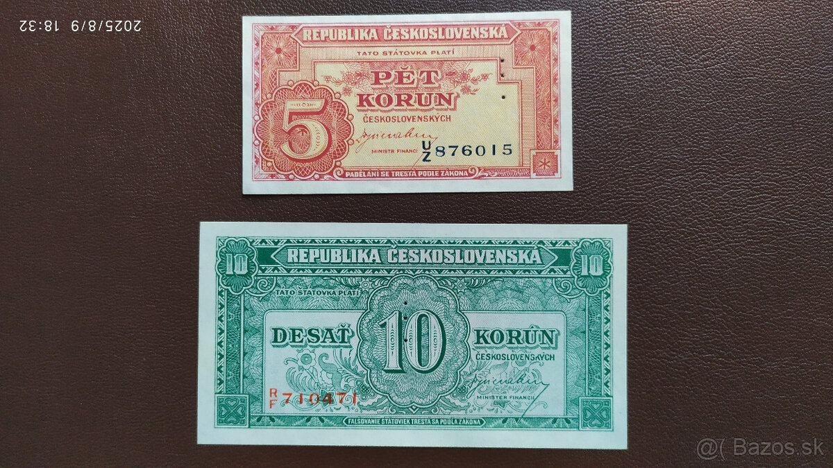 Bankovky 1945, UNC, vzácnejšie - perforované, stav podľa fota.