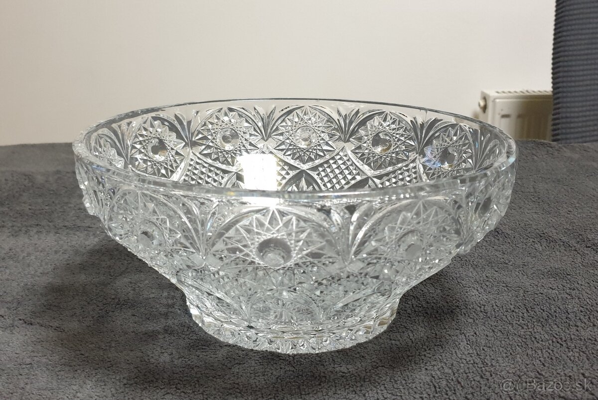 Krasna sklenená oválna misa krystalova -31,5cm - [31.1. 2026]Krásna ťažká misa, ovalneho tvaru, krystalova, priemer 31,5cm.Je dost tazka- preferujem osobný odber.Vitrinovy stav, ako nova.