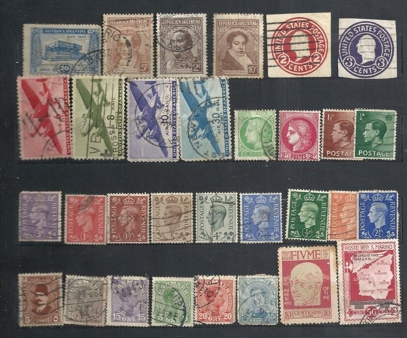 pečiatkované, bez lepu - napr. Holandsko, Francúzsko, Veľká Británia, San Marino, USA, Argentína, Chorvátsko, Kráľovstvo Srbov, Chorvátov a Slovincov, Čína, Rumunsko, 3 známky okupácia Rijeka /Fiume/ a iné, ZSSR čisté s lepom, Poľsko 1919 - 1920 čisté s lepom, aj pečiatkované, bez lepu