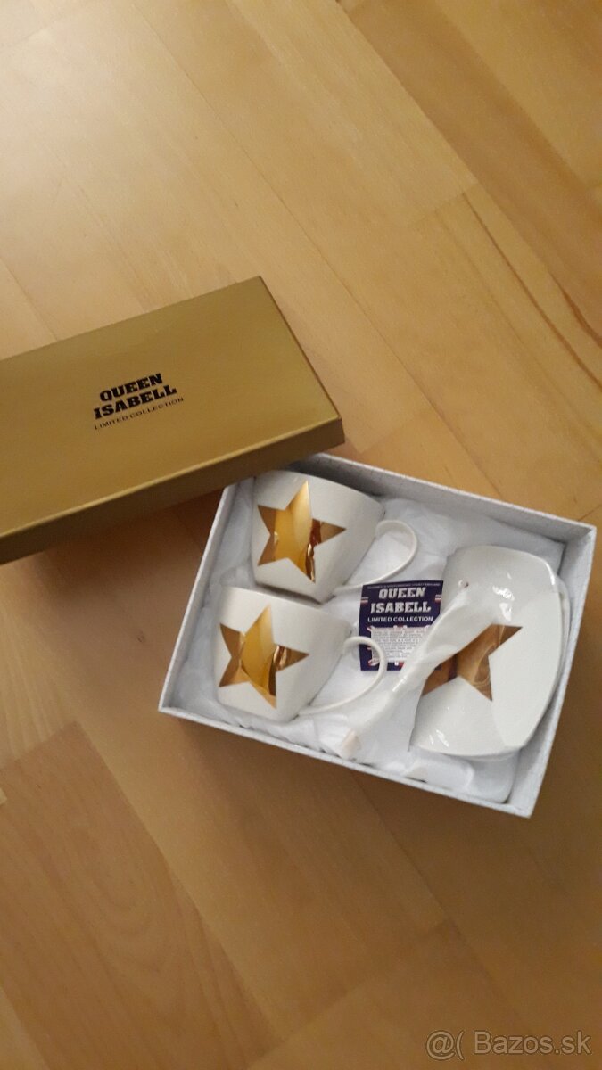 Predám nové 2ks šálky s podšálkami a lyžičkami Queen Isabell limited collection.