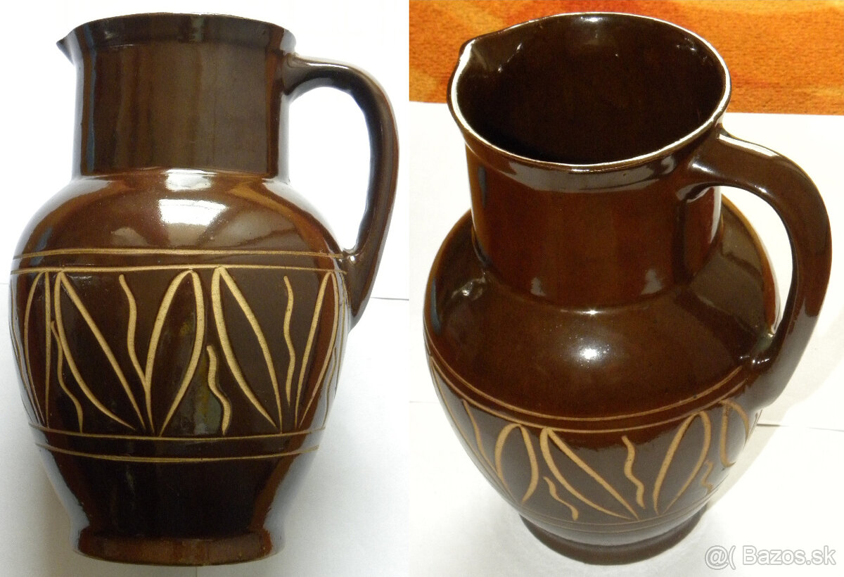 Hnedý keramický džbán (Keramo Kostelec). Výška: 23,5cm, Šírka: 14cm. (15 Eur);