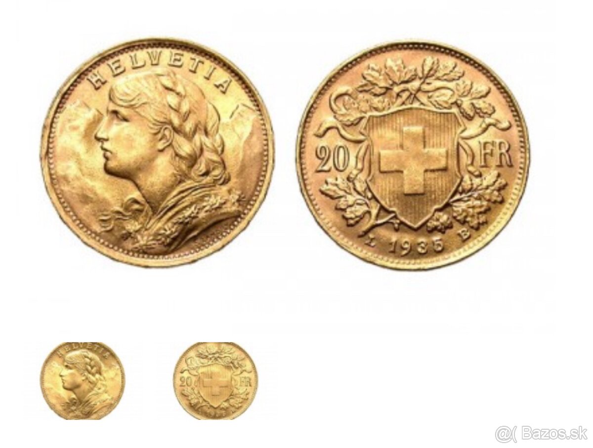 • 20-frankové švajčiarske mince Vreneli (Helvetia)