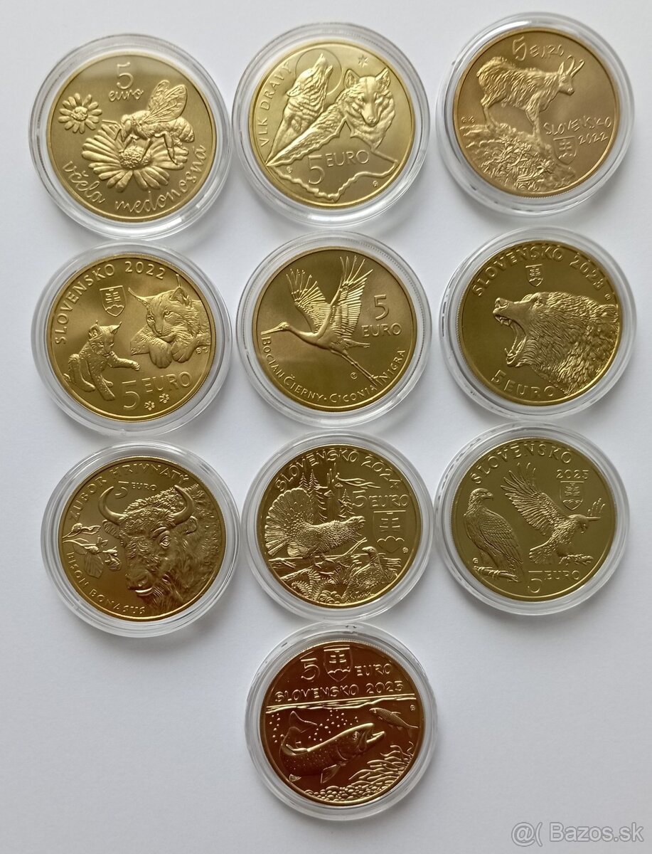 Ponúkam na predaj všetky doposiaľ vydané 5€ mince Fauna a Flóra: