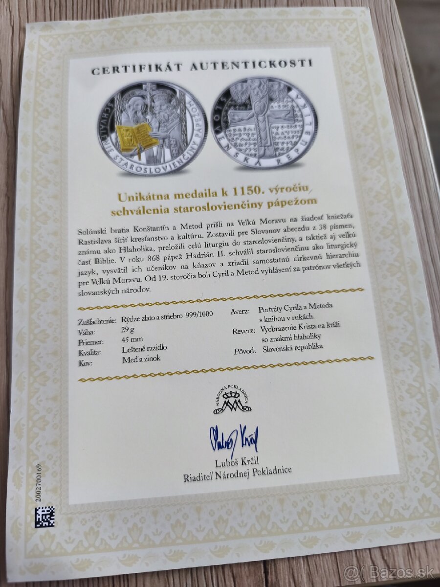 Minca bola zakúpená priamo vo Vatikáne, patrí medzi posledné dostupné kusy.