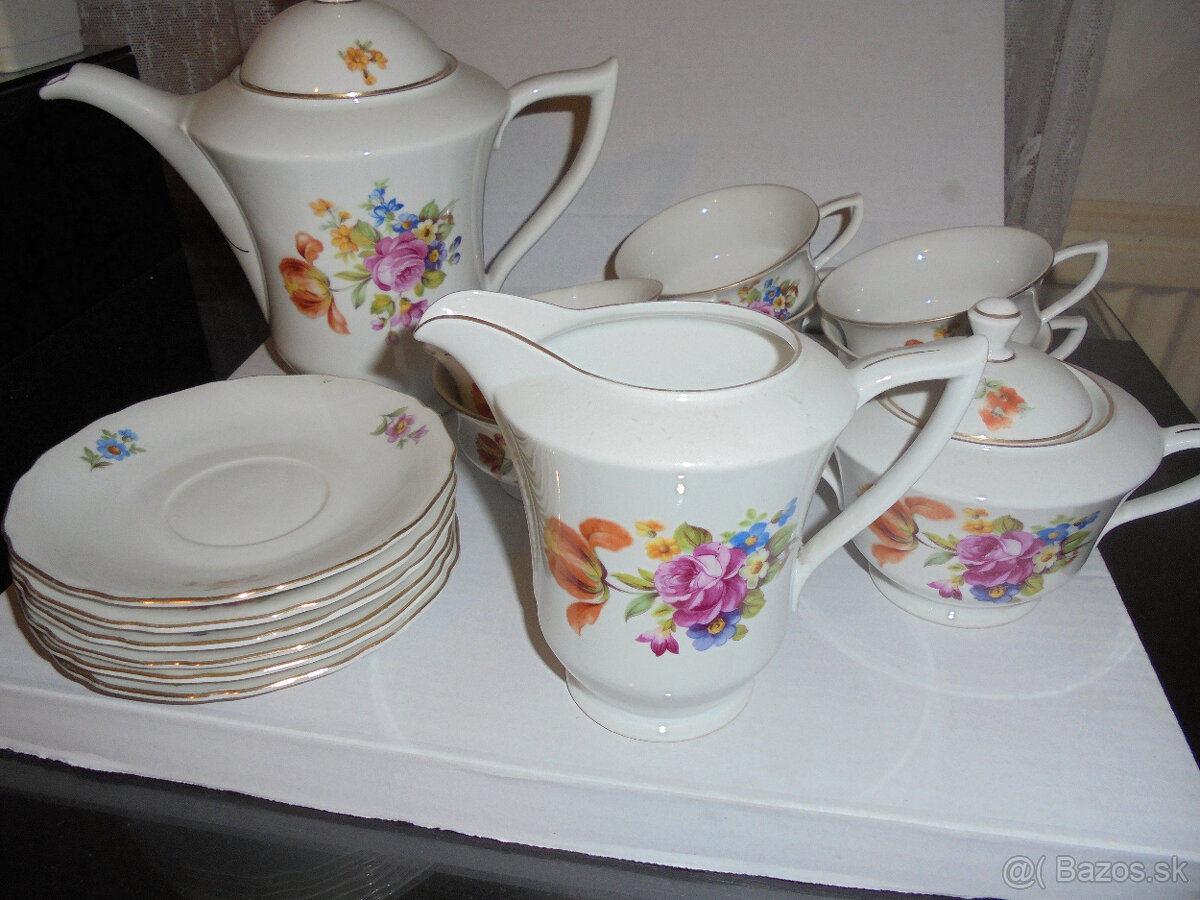 Predám čajový servis: 6 šálok, 6 podšálok, čajová konvica, mlieková konvica, cukornička.