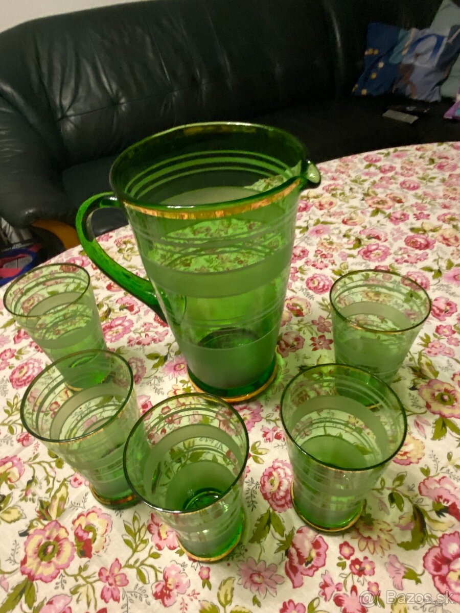 Starožitná sklenená súprava na pivo 1 krčah plus 5 pohárov. Cena 30 €. 0908148173