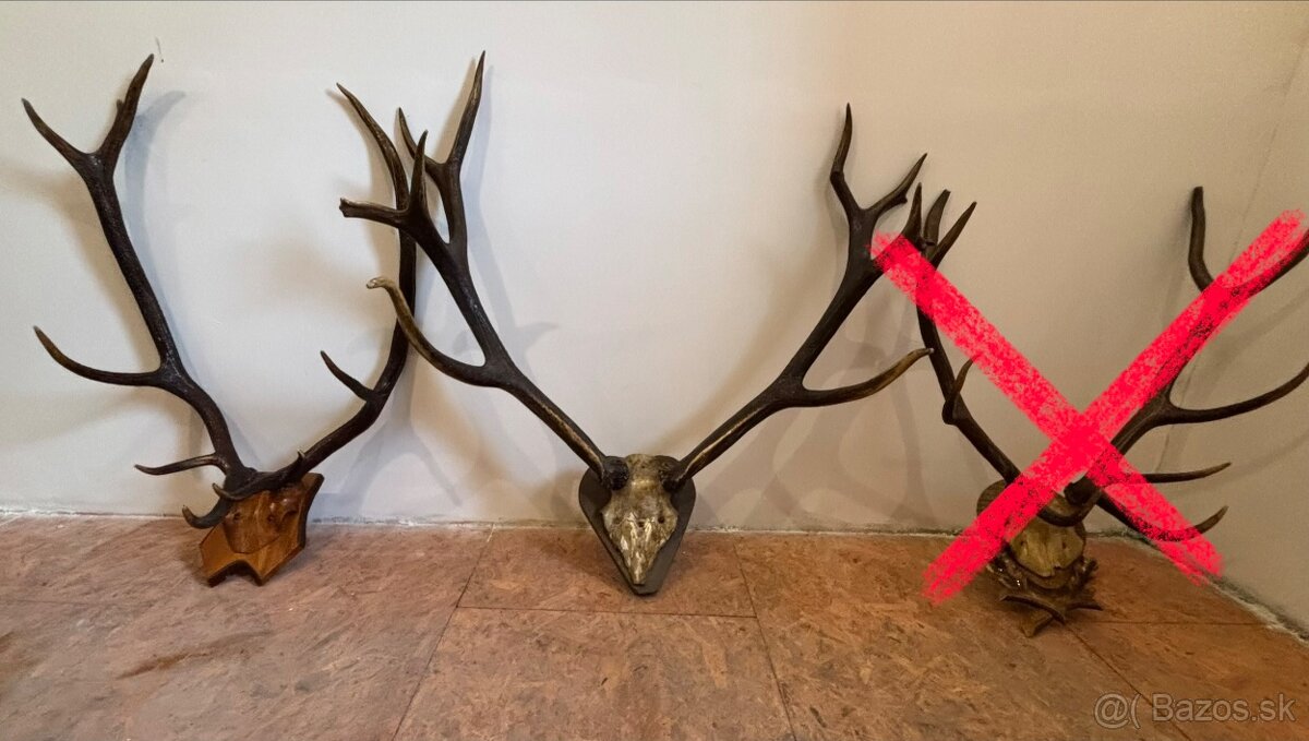 Predám lakované jelenie trofeje. Trofeje sú v dobrom stave. Uvedené hmotnosti sú vrátane podložiek.