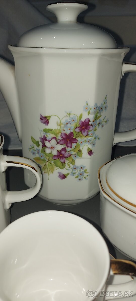 Predám čajovú/kávovú súpravu.Čajník,mliečnik, cukornička,6 ks dezertné taniere,6 ks šálky + podšálky