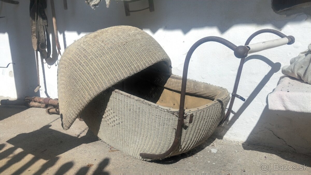 Predám starý kočárik asi 65 ročný - nálezový stav. Je vhodný na rekonštrukciu.