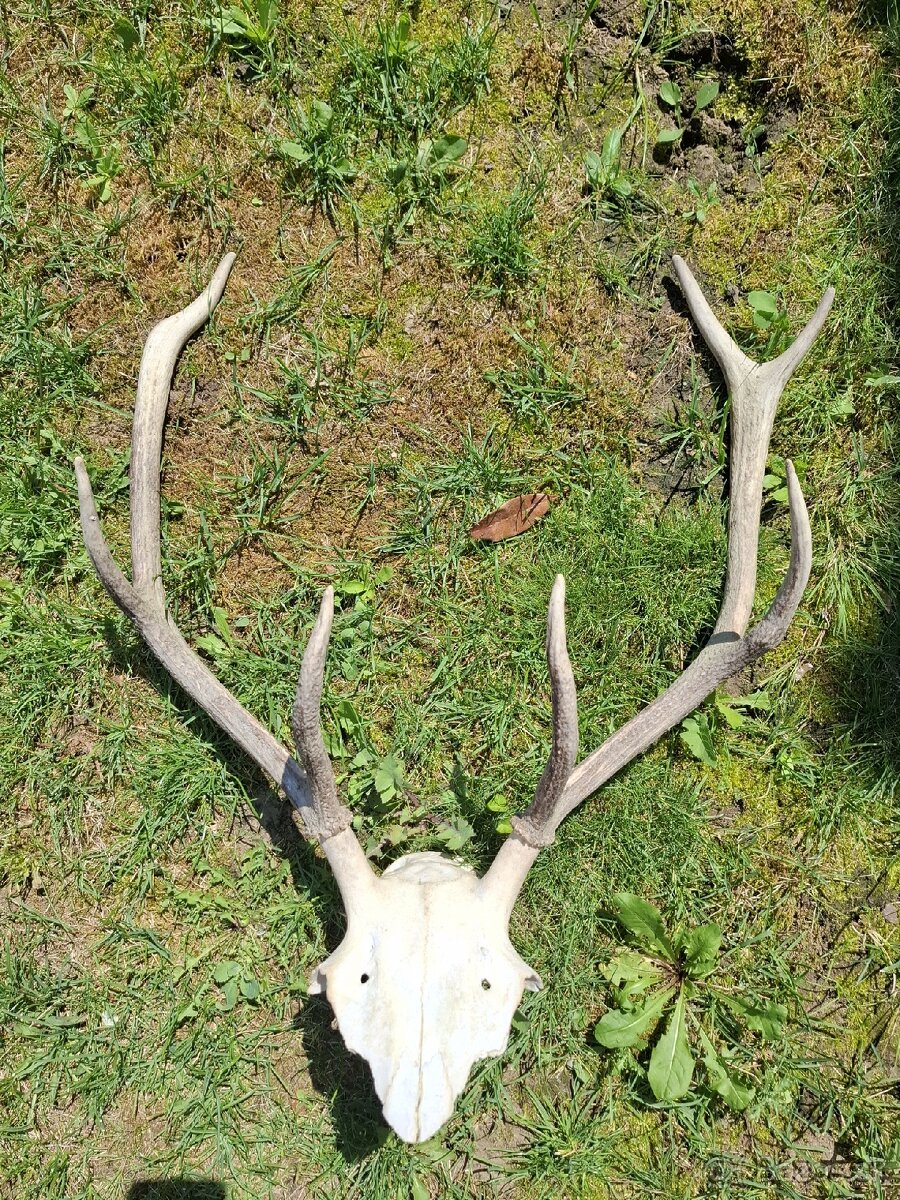 Ponúkam na predaj autentickú jeleniu lebku s parohmi, vhodnú ako štýlový doplnok do chalupy, altánku, reštaurácie či loveckej izby.