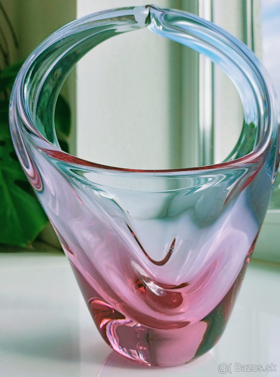 Predám košík z hutného skla, výška cca. 16cm, šírka cca 20 cm. Dizajn zo 60. rokov Ladislav Paleček. Osobný odber Prešov, prosím kontaktovať mailom.