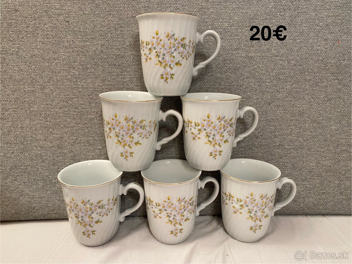 Predám hrnčeky Royal Dux Czechoslovakia - biele kvety. Štyri kusy v poriadku, dva majú drobné nedostatky. 1 má minioťuk (viď foto červený krúžok) a druhý nedostatky na zlatej linke.
