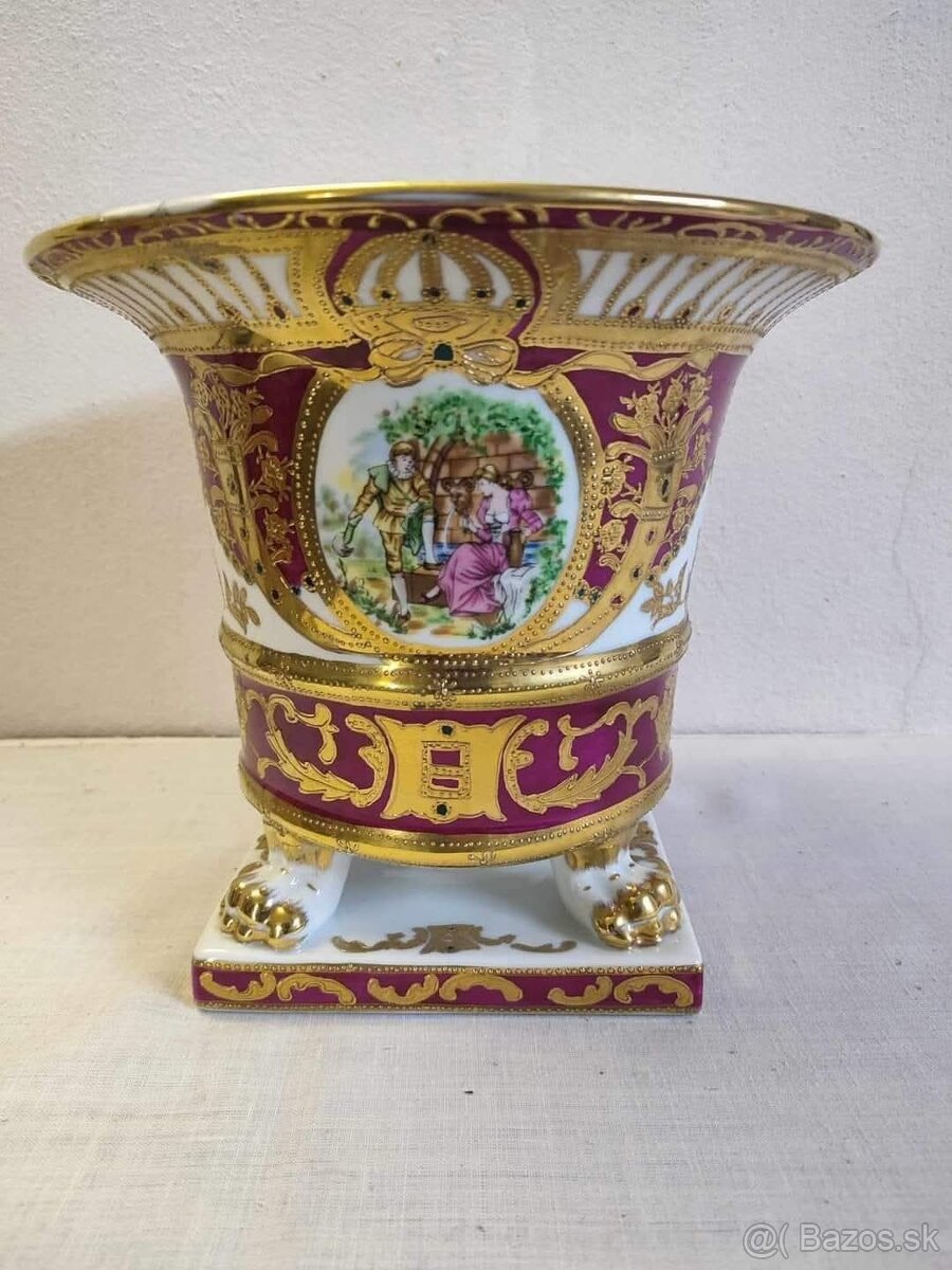 Predám krásnu staru vázu,značená značkou Serves porcelain,Výška 23 cm, priemer 25,5 cm,zrejme profesionálne opravovaný otuk na konci,viď foto, cena 149 eur plus poštovné.
