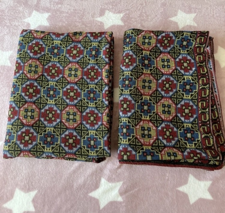 Používané dekoratívne tkaniny, vhodné ako stolový obrus, prehoz alebo na posteľ v dobrom stave. Kus je vhodný na remeselné alebo folklórne účely. Rozmery 127 cm x 164 cm. Viacúčelové. Mám k dispozícií 3 kusy. Možné poslať poštou.