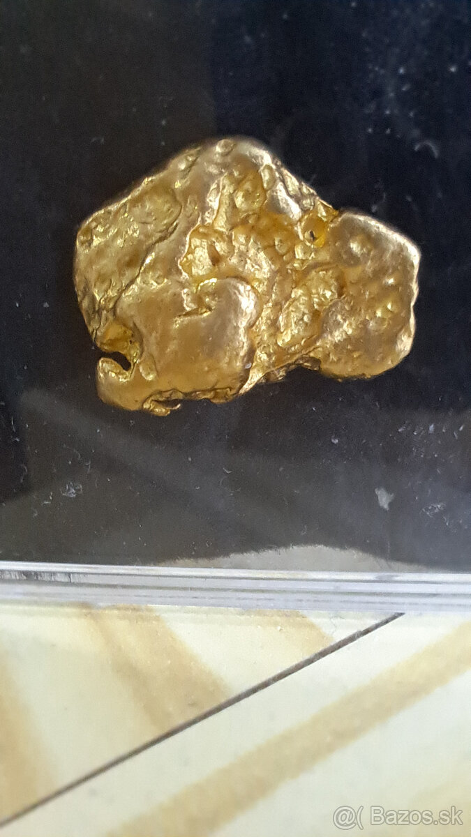 Dobry den.Predam zlaty nuget lokalita Australia.Rozmery-20.15.8mm.Vaha-14,2 gramu.Pridavam fakturacny list.Len do vlastnych ruk.Cena 2000€.