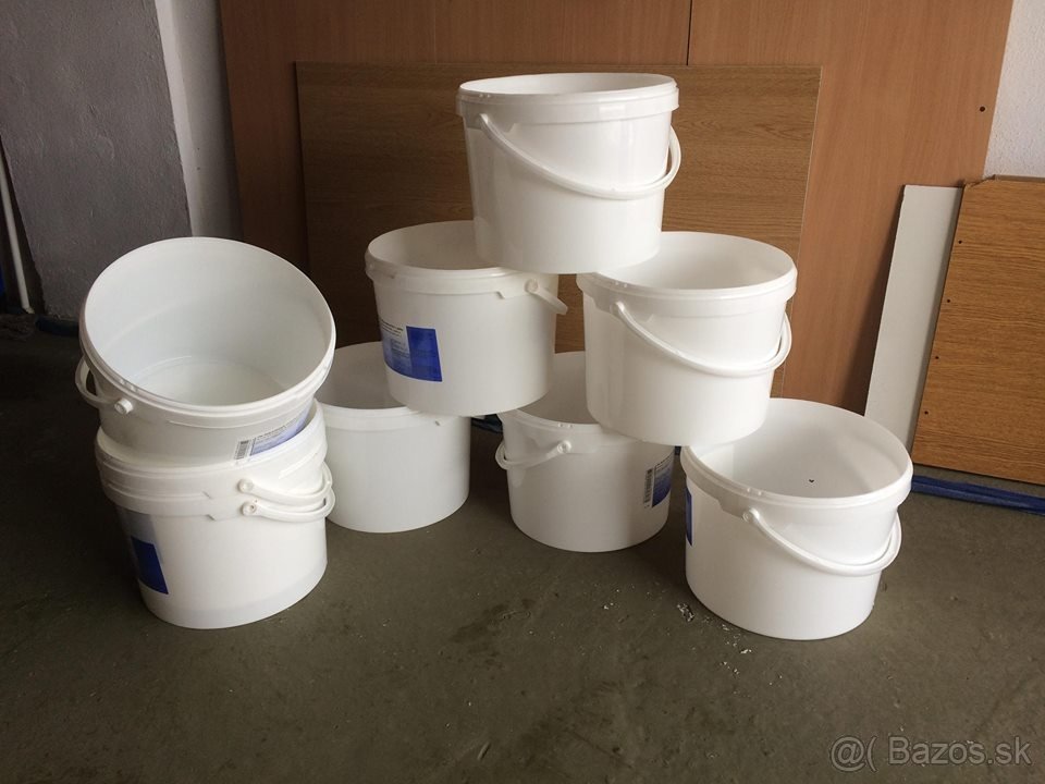 Predám plastové vedrá objem 10 litrov 0,60 €, vrchnak 0,10 €. Su čisté,umyté,boli raz použité v potravinárstve