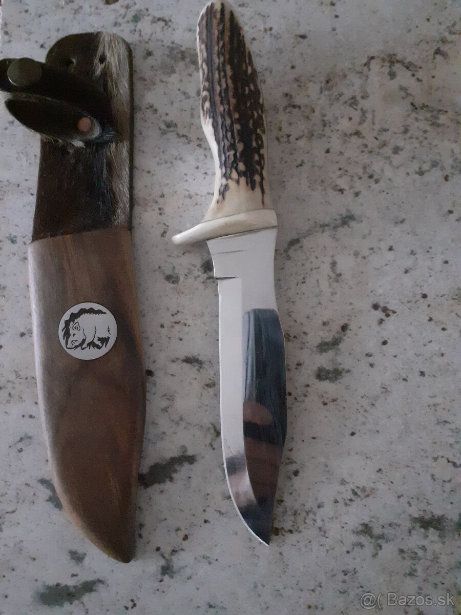 Robená na zakázku nožiarom.K nožu patrí tiež na zakázku robená pošva.V prípade záujmu za lacno predám a držiak na stenu ktorý je na foto.