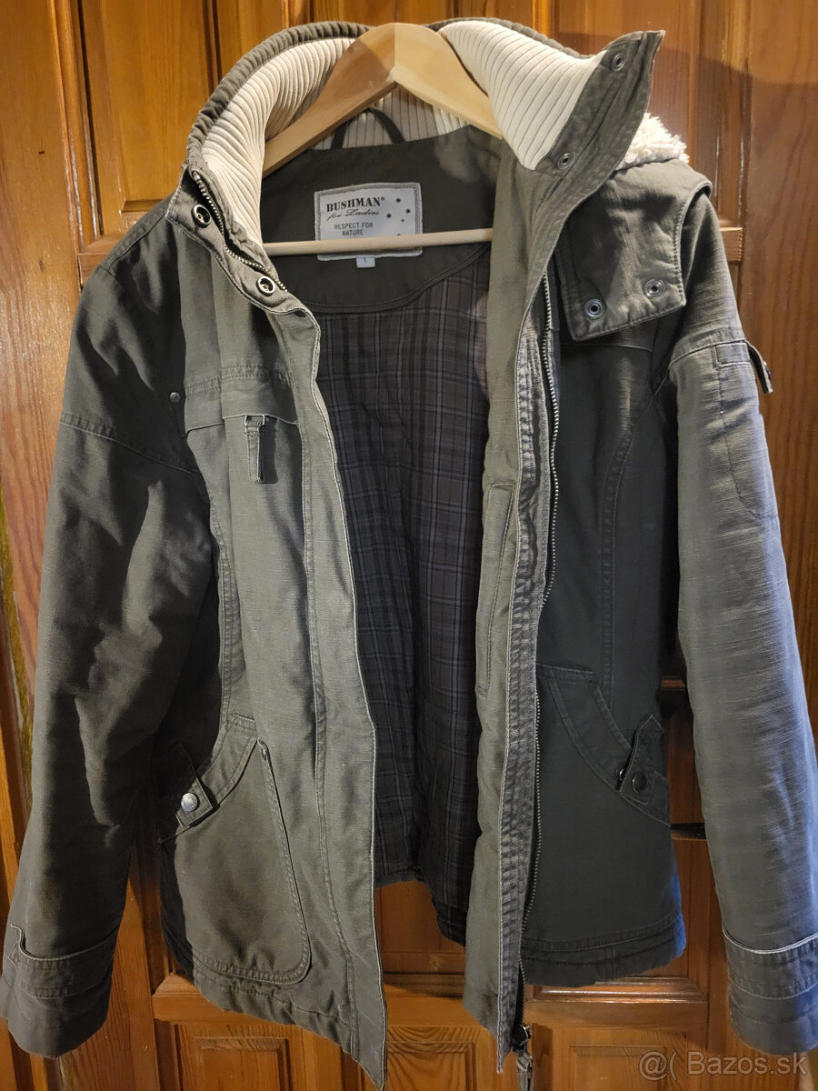 Predám zimnú dámsku textilnú bundu s kapucňou, značky Bushman, veľkosť L, zelená kaki farba.