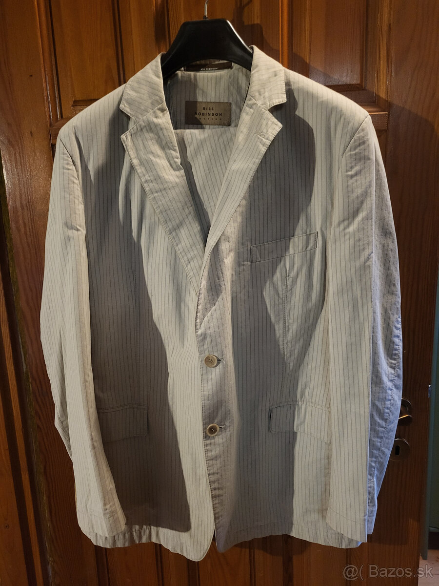 Predám letný pánsky oblek. Manžel ho mal párkrát na sebe. Je to veľkosť XL, nohavice veľkosť 27, pás 100cm, vonkajšia dĺžka 107 cm, vnútorná 79cm.