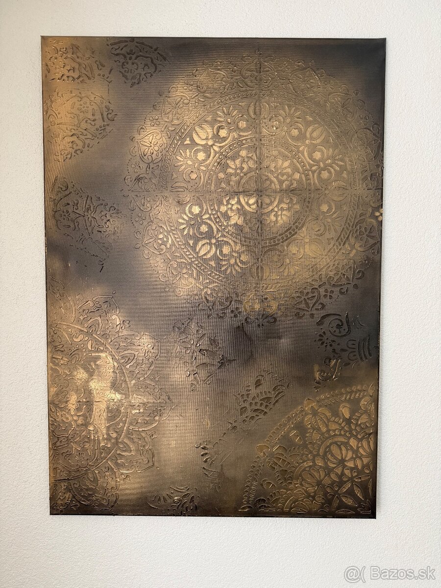 Predám ručne robený dekoratívny obraz s mandala vzorom. Použitá reliéfna pasta vytvára krásnu štruktúru a povrch jemne odráža svetlo, takže obraz pôsobí elegantne a luxusne v interiéri. Vhodný do obývačky, spálne aj kancelárie.