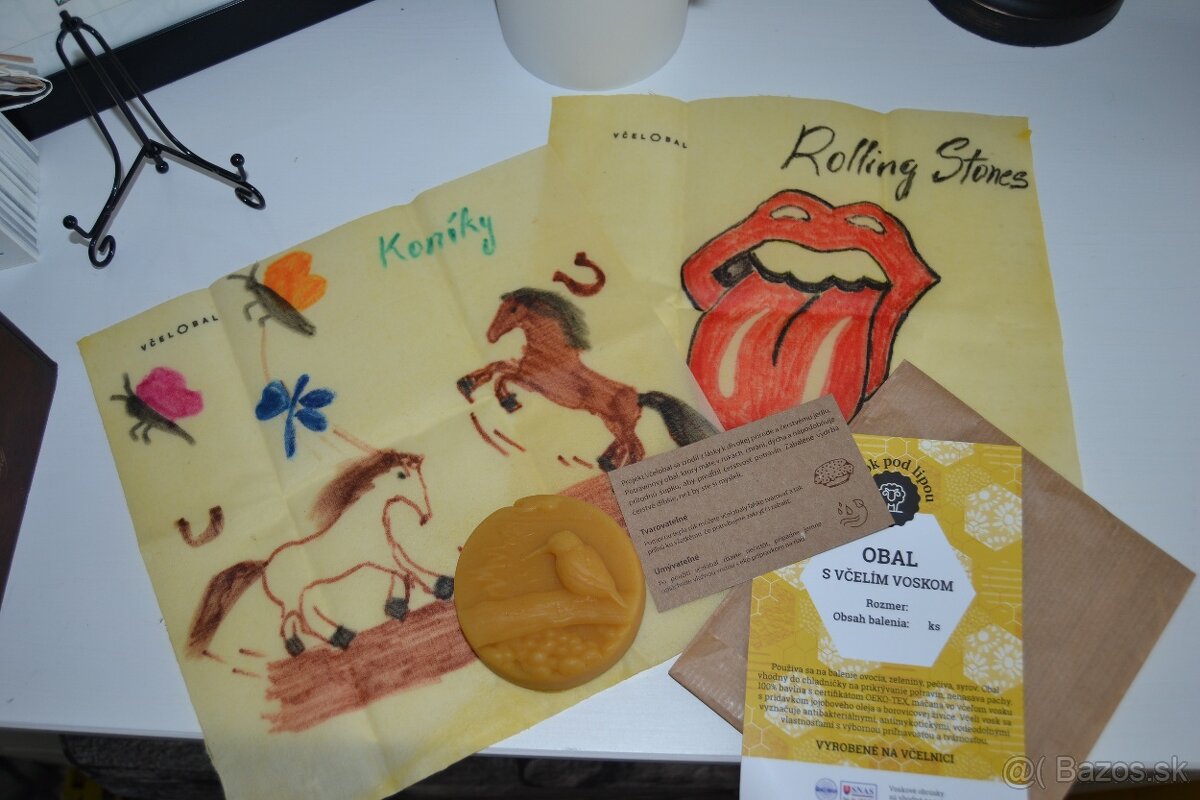 Materiál: bio-bavlna, vosk, jojobový olej, 100 % bavlna, včelí produkt, živica